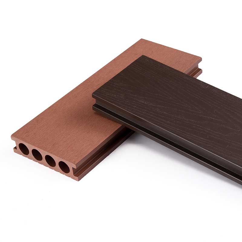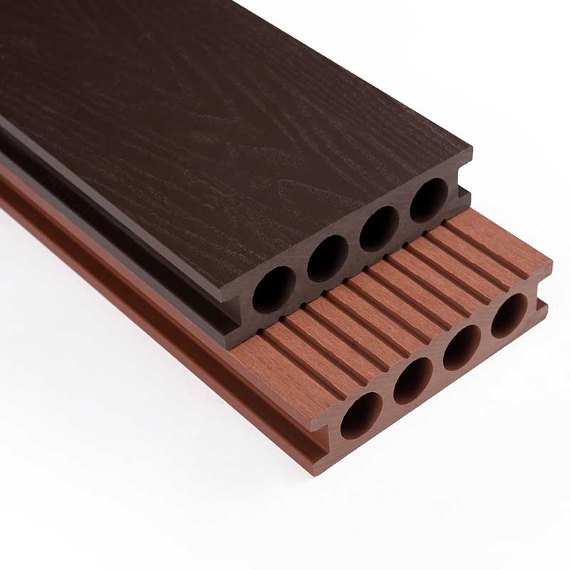 Round hole wpc decking, which is designed so that when the floor is used to receive external loads, the forces are evenly distributed, making the structure more stable without deformation. The square deck, on the other hand, when bearing weight, will have more of the forces dispersed at the ends, and the structure will be bent and deformed over time.